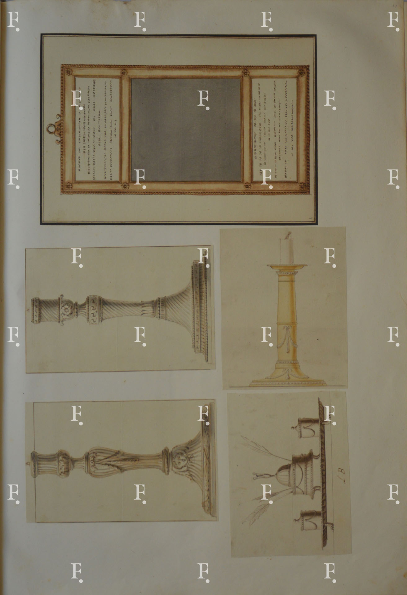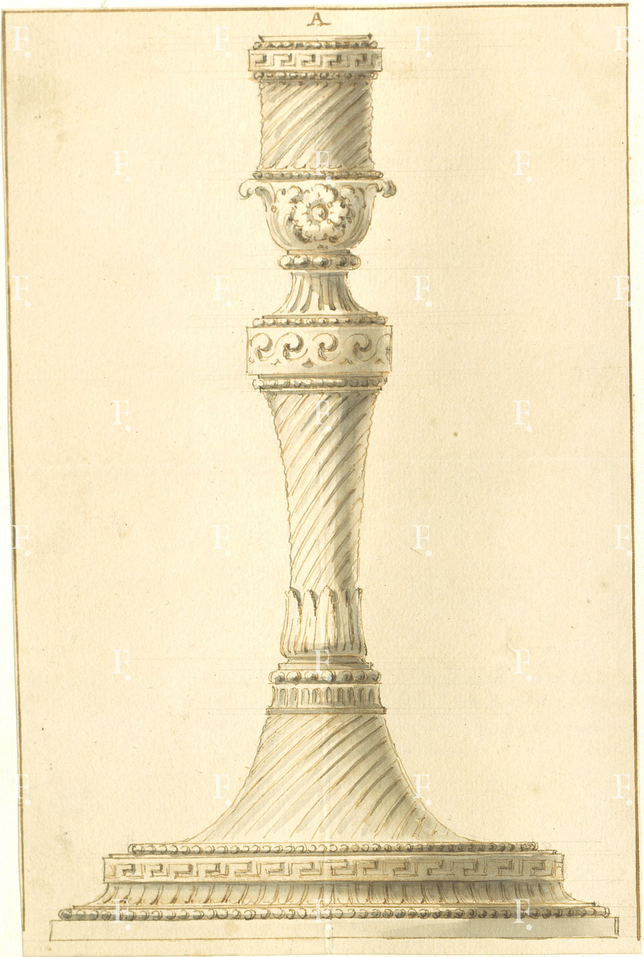 Luigi Valadier, Silver candle holder, c. 1770-5, graphite, pen, brown ink, grey wash on paper, 240 x 160 mm.; inscription in pen upper centre: “A”.