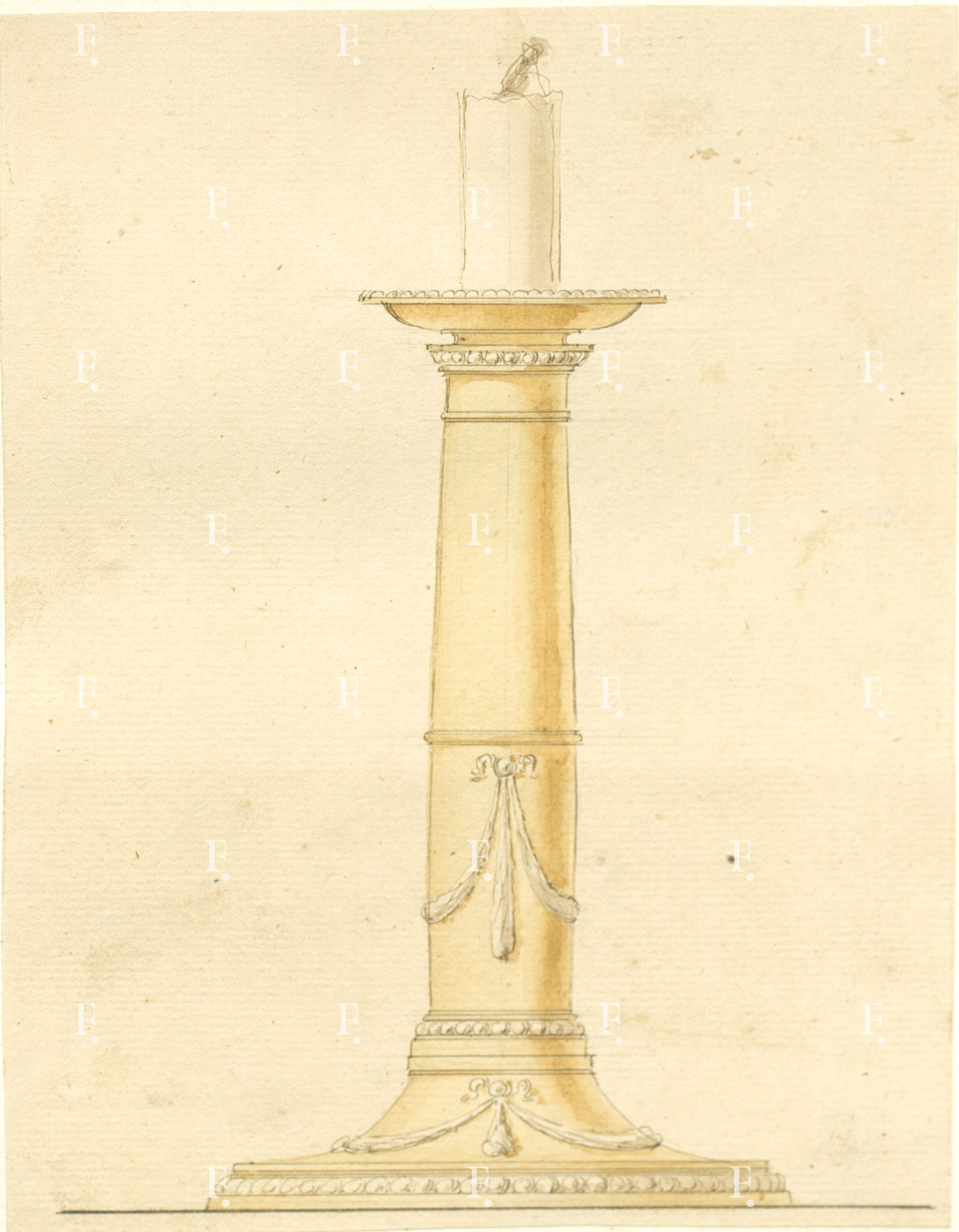 Giuseppe Valadier, Silver gilt or ormolu candle holder, c. 1795, graphite, pen, grey ink, yellow and brown wash on paper, 205 x 155 mm.