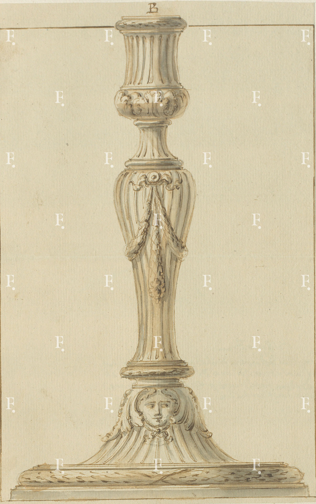 Luigi Valadier, Silver candle holder, c. 1770-5, graphite, pen, brown ink, grey and brown wash on paper, 245 x 155 mm. inscription in pen upper centre: “B”.