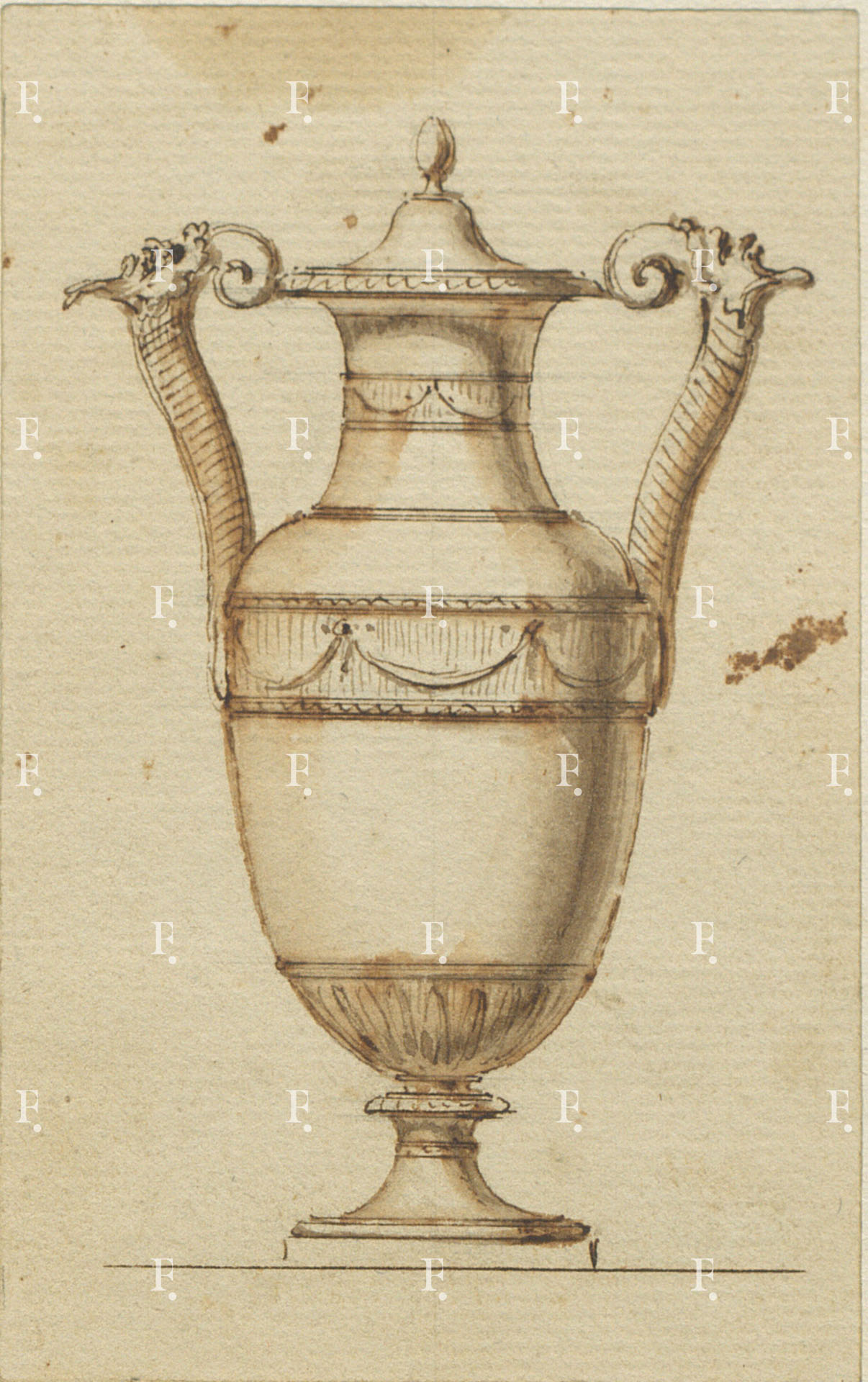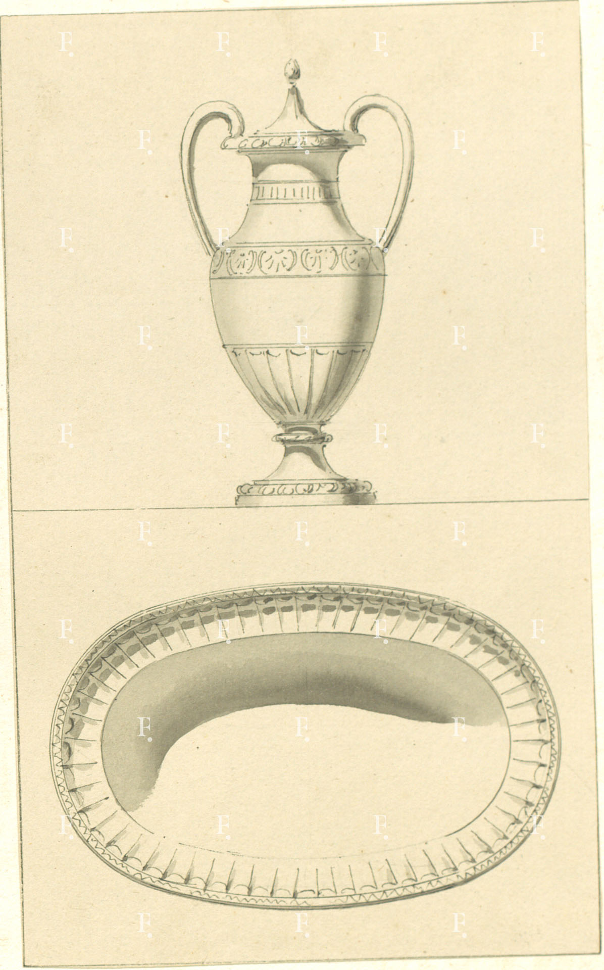 Giuseppe Valadier, Silver amphora and basin, c. 1790, graphite, pen, grey ink, grey wash on paper, 200 x 120 mm.
