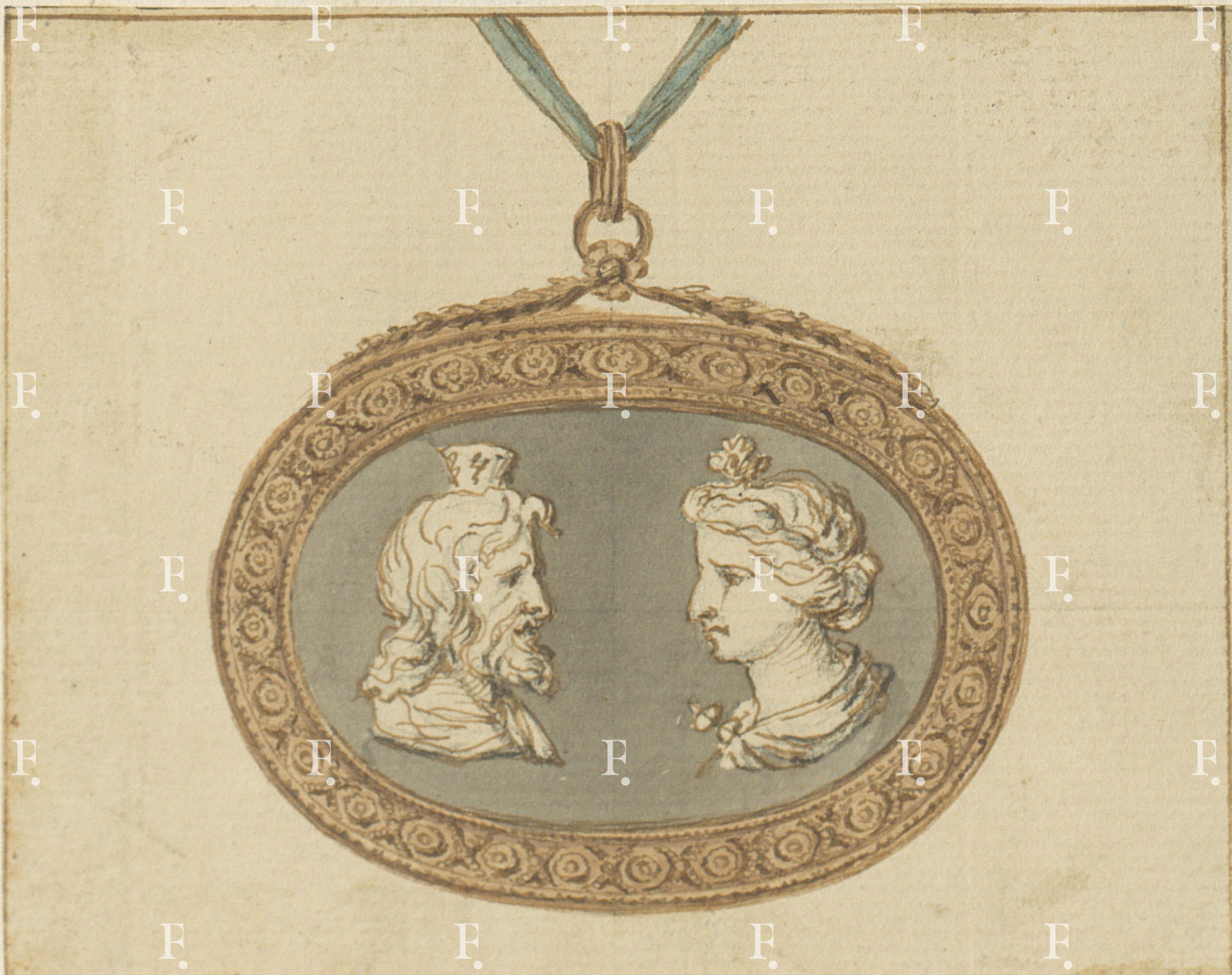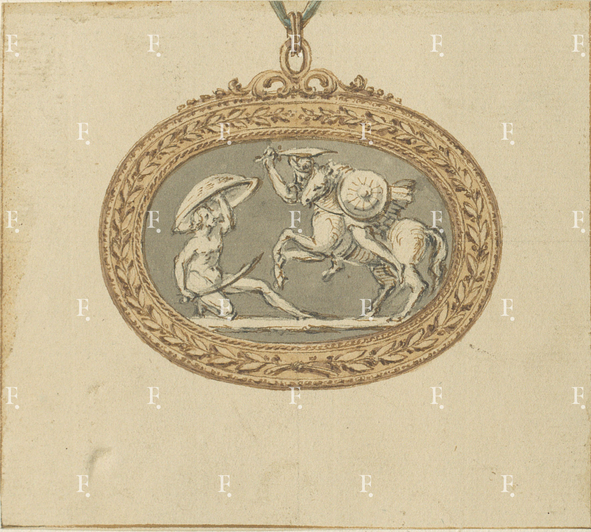 Workshop of Luigi Valadier, Ormolu mount for a classical cameo, c. 1780-5, graphite, black chalk, pen, brown ink, brown and grey wash on paper, 120 x 105 mm.