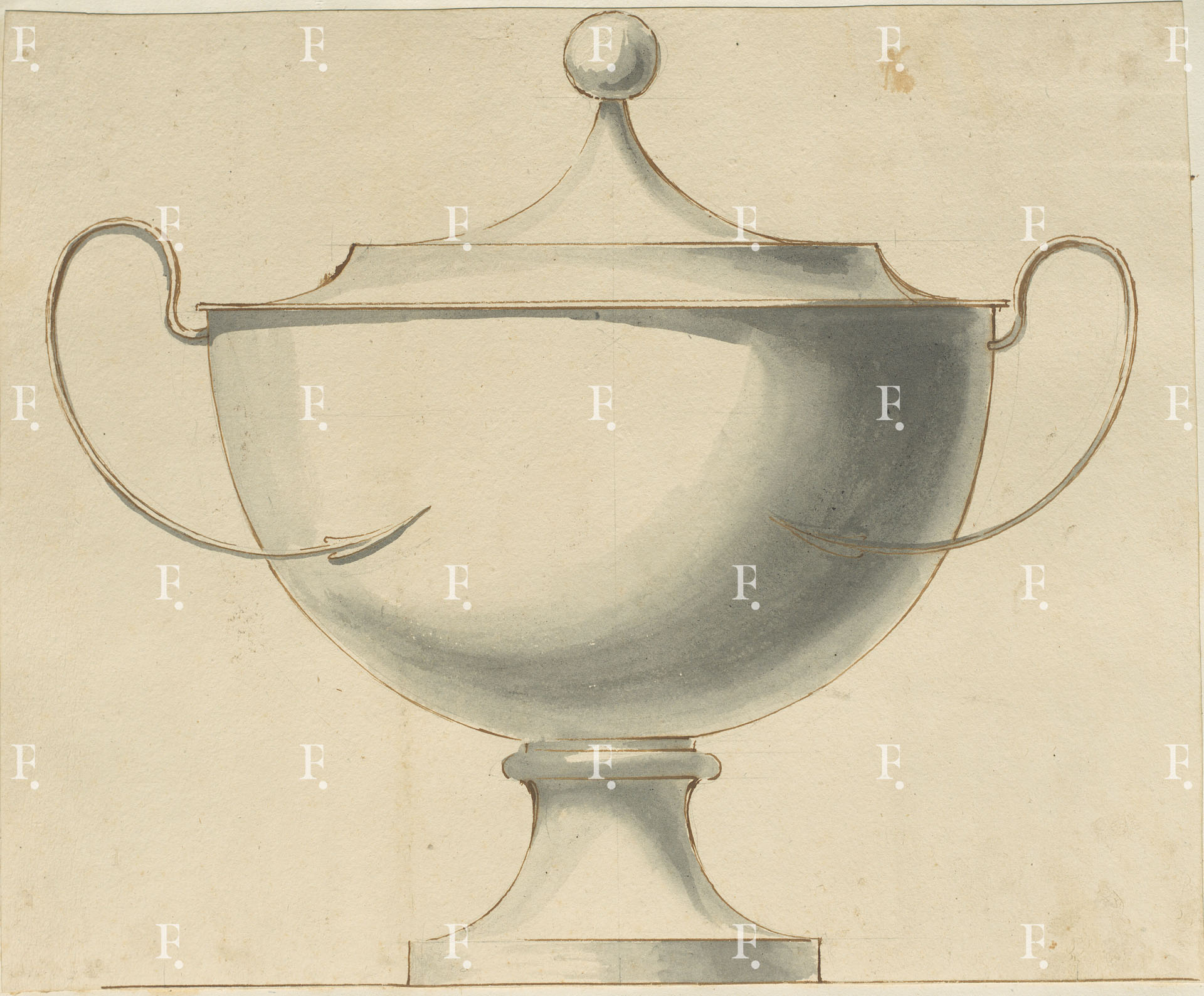 Giuseppe Valadier, Silver soup tureen, c. 1790, graphite, pen, brown ink, grey wash on paper, 315 x 390 mm.