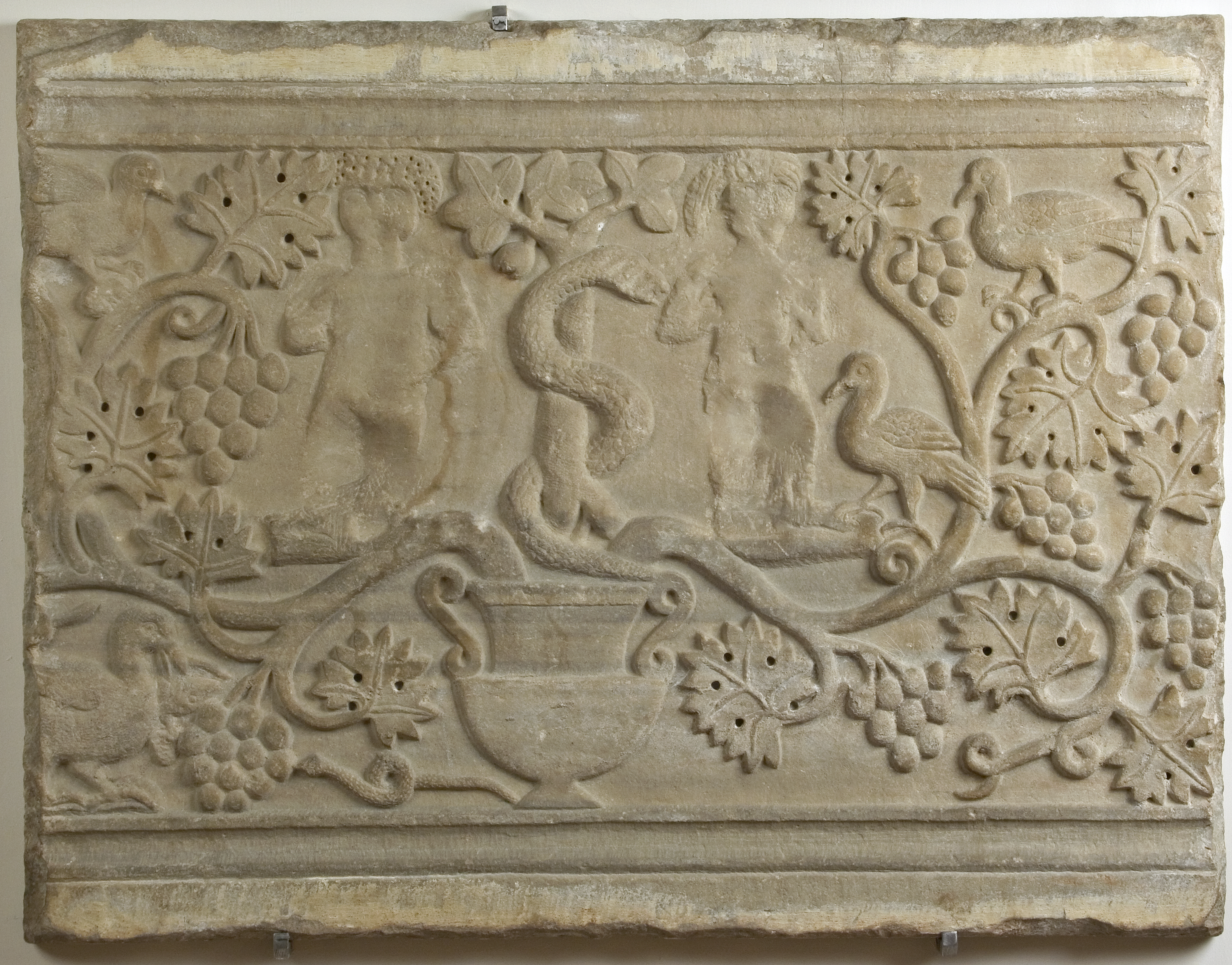 La lapide che raffigura il Peccato Originale era anticamente un pluteo della basilica di Sant’Apollinare Nuovo a Ravenna, ma venne riutilizzata nell’Ottocento come lapide tombale.La croce in pietra calcarea del X-XI secolo, anticamente ubicata nel sagrato della chiesa di Sant’Antonino in Faenza, lungo il tracciato della via Emilia, indicava l’edificio di culto ai pellegrini; all’incrocio dei bracci, sono scolpiti su un lato l’Agnus dei, e sull’altro la mano divina benedicente. Il bassorilievo in pietra proveniente dalla chiesa di Sant’Eutropio con iscrizione e data 1127, che ne celebra la ricostruzione, costituisce probabilmente la prima opera datata nella storia dell’arte faentina.